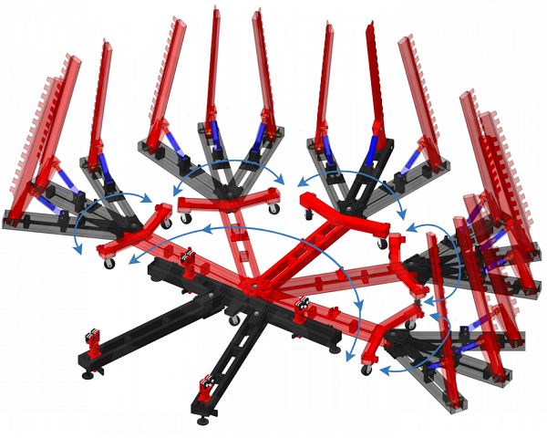 Подкатной стапель предназначен для мелкого и среднего кузовного ремонта легковых автомобилей, имеющих отбортовку порогов (для автомобилей, не имеющих отбортовку порогов применяются специальные крепления)