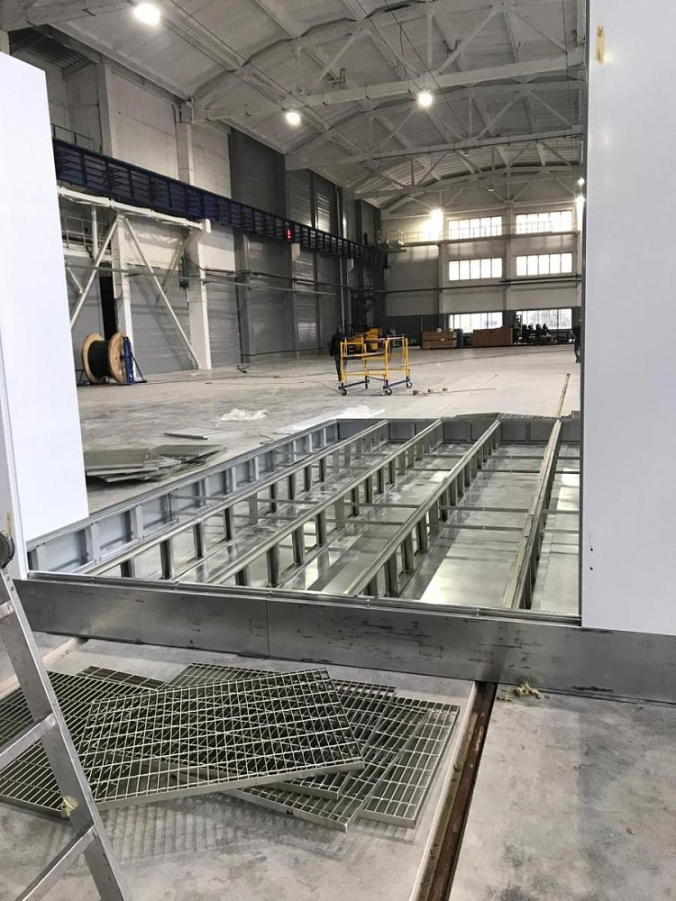 Наименование Характеристики Стены Сэндвич-панель, наполненная пенополистиролом Основание Металлическое основание камеры и группы притока высотой 25 см Наружные размеры Длина — 7 м, ширина — 5.3 м, высота — 3.5 м Внутренние размеры Длина — 6.9 м, ширина — 3.9 м, высота — 2.7 м Главная дверь Трехстворчатая, ширина — 3 м, высота — 2.7 м Аварийная дверь Ширина — 0.8 м, высота — 2 м, алюминиевый сэндвич Освещение Верхний уровень — 40 ламп по 36 Вт