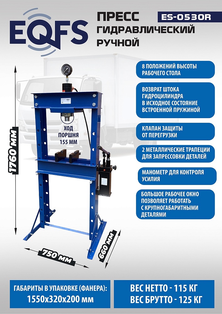 ES-0530R Пресс гидравлический ручной, 30 тонн купить в Краснодаре цена ✅ - Все для СТО