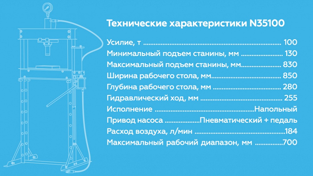 Пресс гидравлический PRO NORDBERG N35100 – незаменимое оборудование в автосервисах, гаражах, позволяющее эффективно и быстро выполнять различные ремонтные работы.