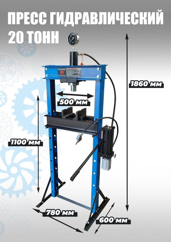Пресс напольный, управление ручное/пневматическое, усилие 20 тонн.