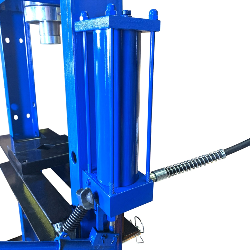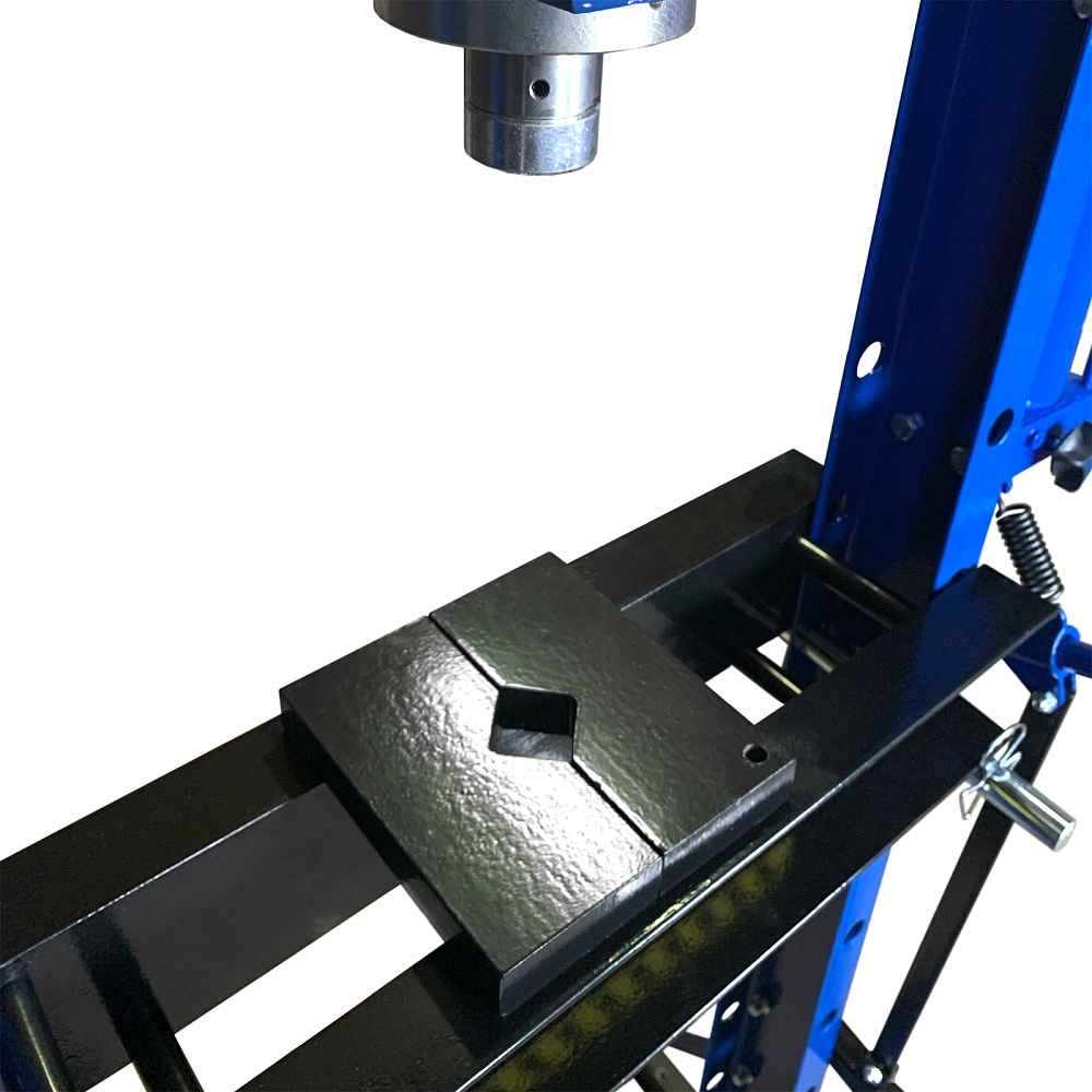 Этот пресс разработан для профессиональной работы в сервисах и СТО, где недопустимы производственные задержки и поломки: рукоять для накачки цилиндра дублируется ножной педалью, в конструкции используется прочная толстая сталь, большой стол позволяет размещать для работы самые разные запчасти, а ход штока цилиндра по горизонтали составляет 480 мм. К данной модели также подходит следующий набор пуансонов: