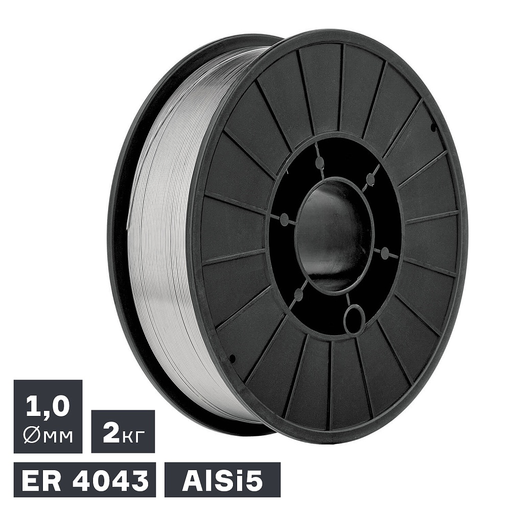 Проволока для сварки алюминия (AlSi5) диаметром 1,0 мм. Вес катушки – 2 кг. Подходит для полуавтоматической сварки MIG металлов из AlSi сплавов с максимальным содержанием кремния.