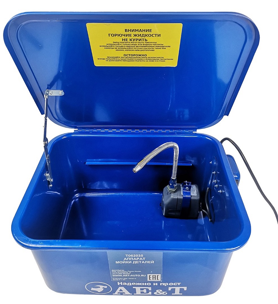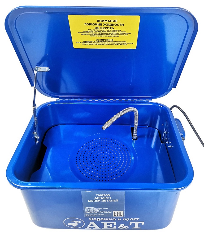Аппарат мойки деталей 19 л AE&T T062035 используется в автомастерских, производственных цехах и на станциях технического обслуживания. Ванночка объемом 19 литров и гофрированный металлорукав для направленной подачи струи очищающего раствора обеспечивают удобство эксплуатации. Специальное покрытие защищает оборудование от влияния коррозии в течение всего срока службы. Преимущества AE&T T062035