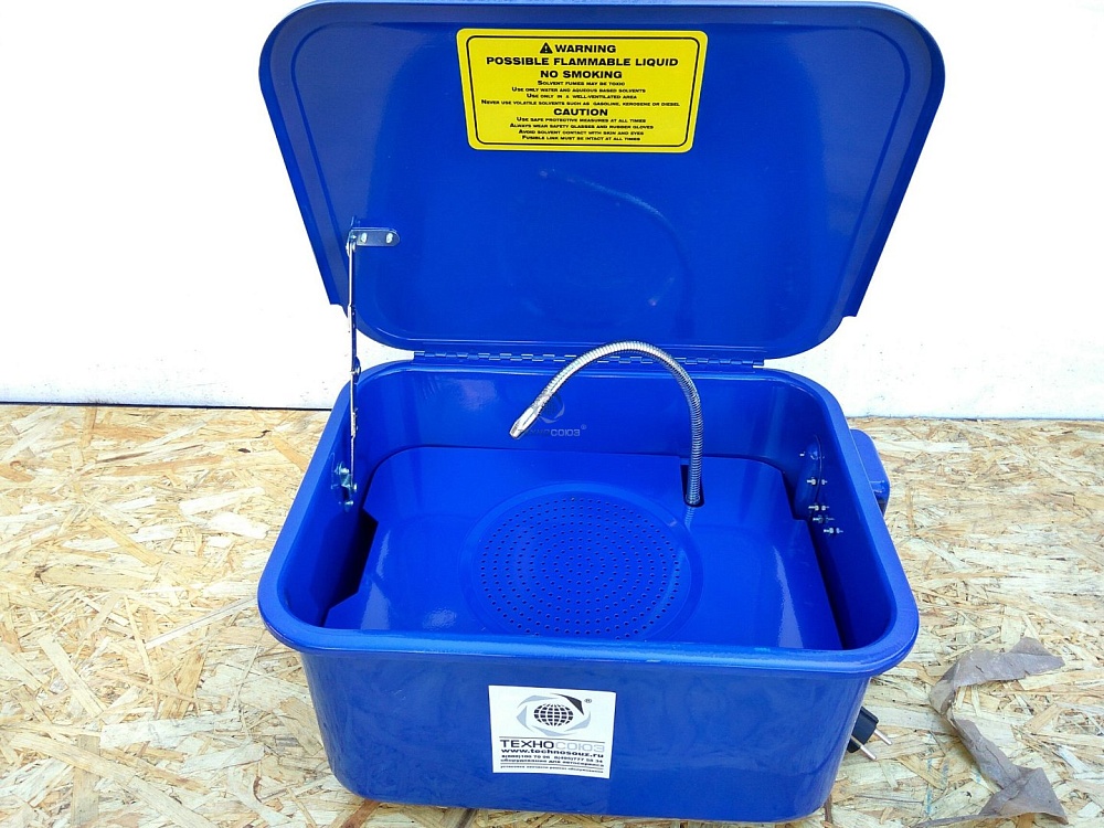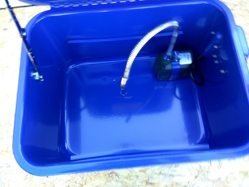 Мойка для мелких деталей с электрическим насосом. Рекомендуется для автосервисов, мастерских по ремонту автомобилей, ремонту топливной аппаратуры, ремонту электро- бензоинструментов, мотоблоков, лодочных моторов и т.п.