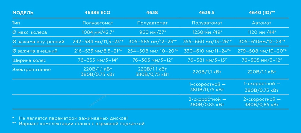 Возможность обслуживать колеса мотоциклов и квадроциклов. Для этого необходимы опции: