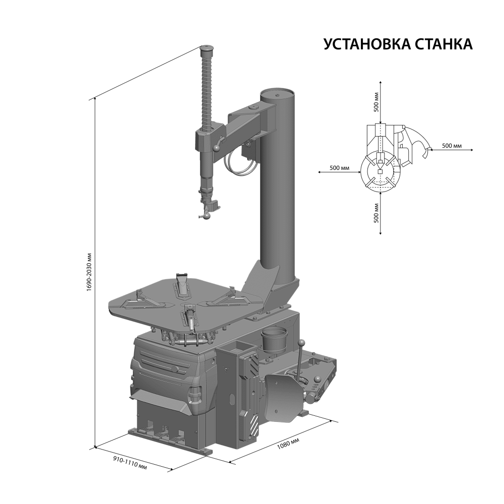 Полуавтоматический шиномонтажный станок диаметр дисков от 12" до 30" (максимальный диаметр колеса до 1200 мм), 380В, с устройством для быстрой накачки шин