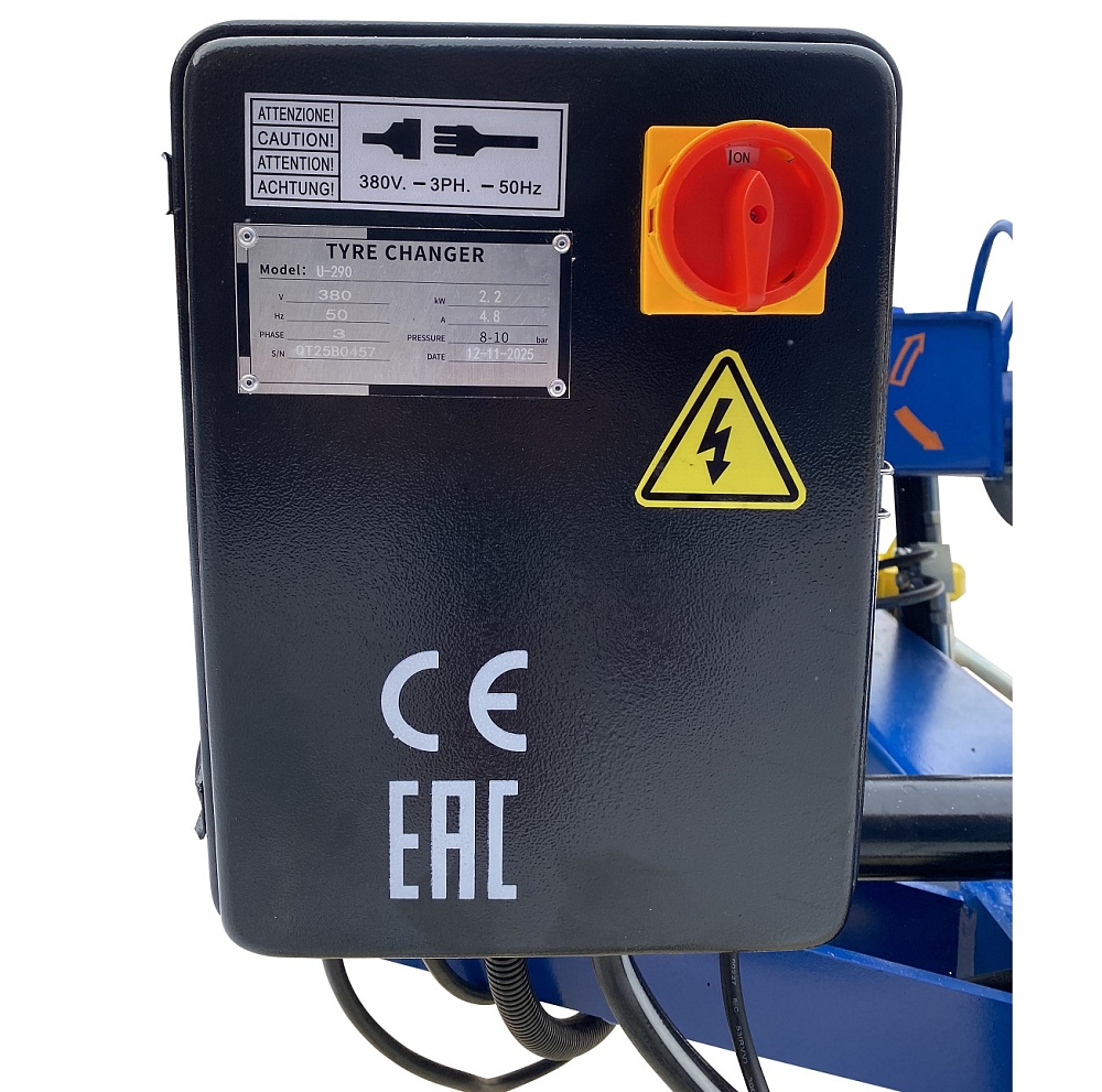 Электрические части грузового шиномонтажного станка выполнены в закрытом исполнении с заземлением.