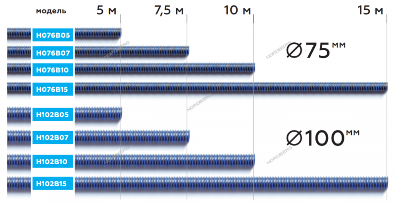 Шланг газоотводный H102B10 d=102мм, длина 10м (синий) NORDBERG
