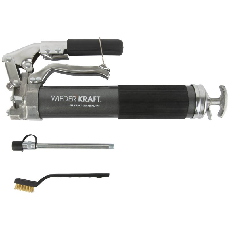 Шприц WDK-65159 рычажно-плунжерный необходим для нагнетания смазки при проведении профилактических, ремонтных и обслуживающих работ. Шприц обладает рычажным механизмом с рукояткой, которая не скользит в руке во время работы.