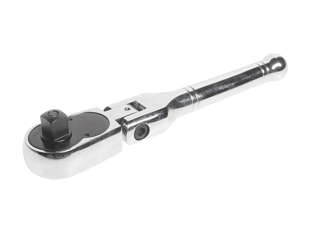 Трещотка укороченная 3/8" 45-зубцовая на шарнире с фиксацией, с металлической рукояткой, длина 162мм