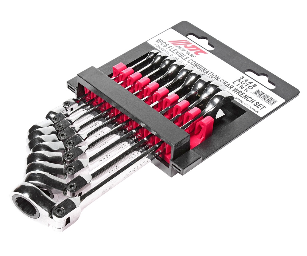 JTC-3448 Набор ключей комбинированных трещоточных с подвижной головкой 8-17мм (на холдере) 9 предметов JTC /1 купить в Краснодаре цена ✅ - Все для СТО