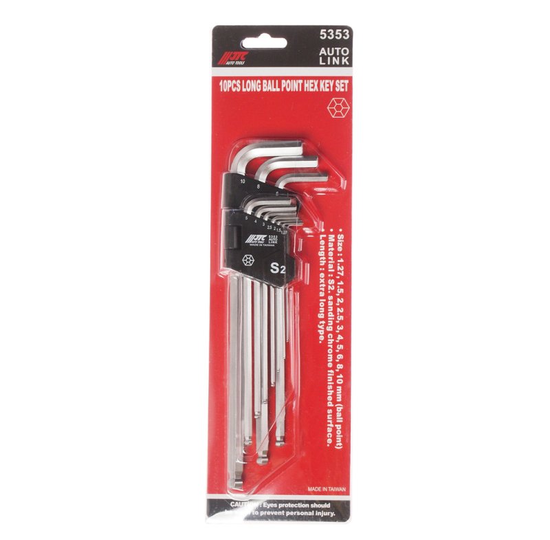 Набор ключей шестигранных Г-образных, с шаром экстрадлинных 1.27-10мм 10пр. JTC