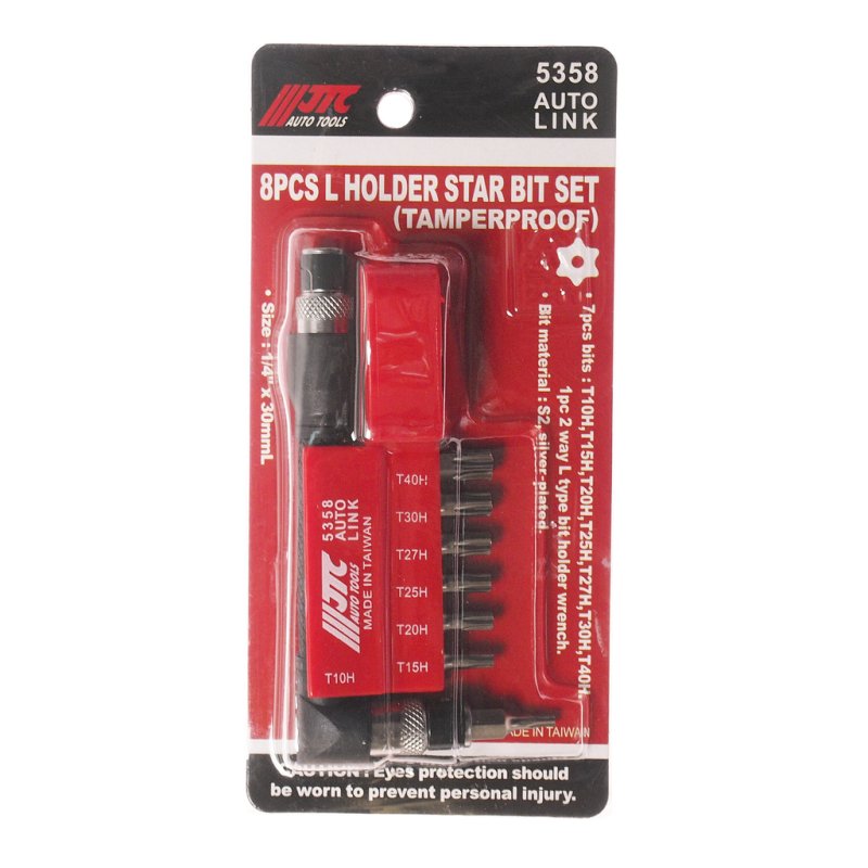 JTC-5358 Набор вставок 1/4"DR TORX с отверстием T10H-T40H и Г-образным держателем 8пр. JTC