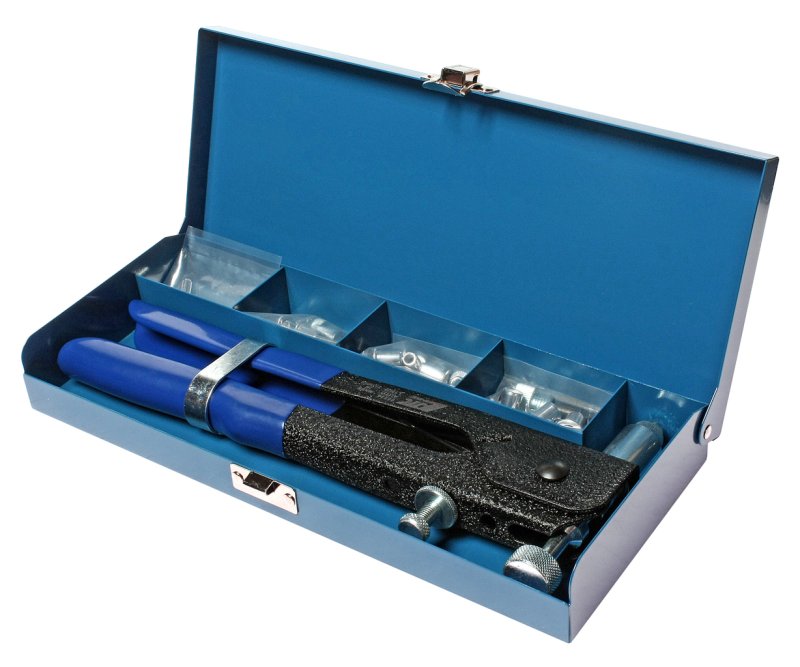 Заклепочник ручной резьбовой с заклепками в комплекте 3; 4; 5; 6мм, общая длина 270мм (в кейсе), , ш