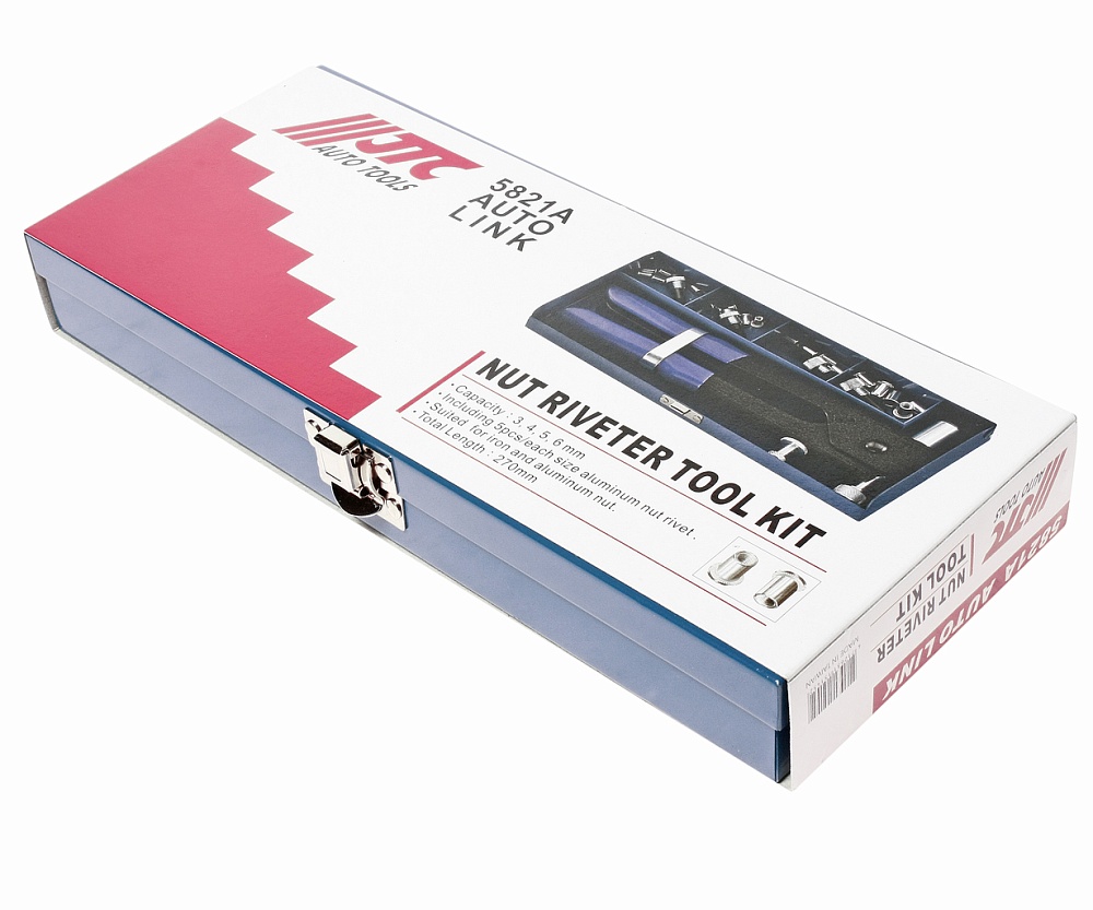 JTC-5821A Заклепочник ручной резьбовой с заклепками в комплекте 3; 4; 5; 6мм, общая длина 270мм (в кейсе), , ш купить в Краснодаре цена ✅ - Все для СТО