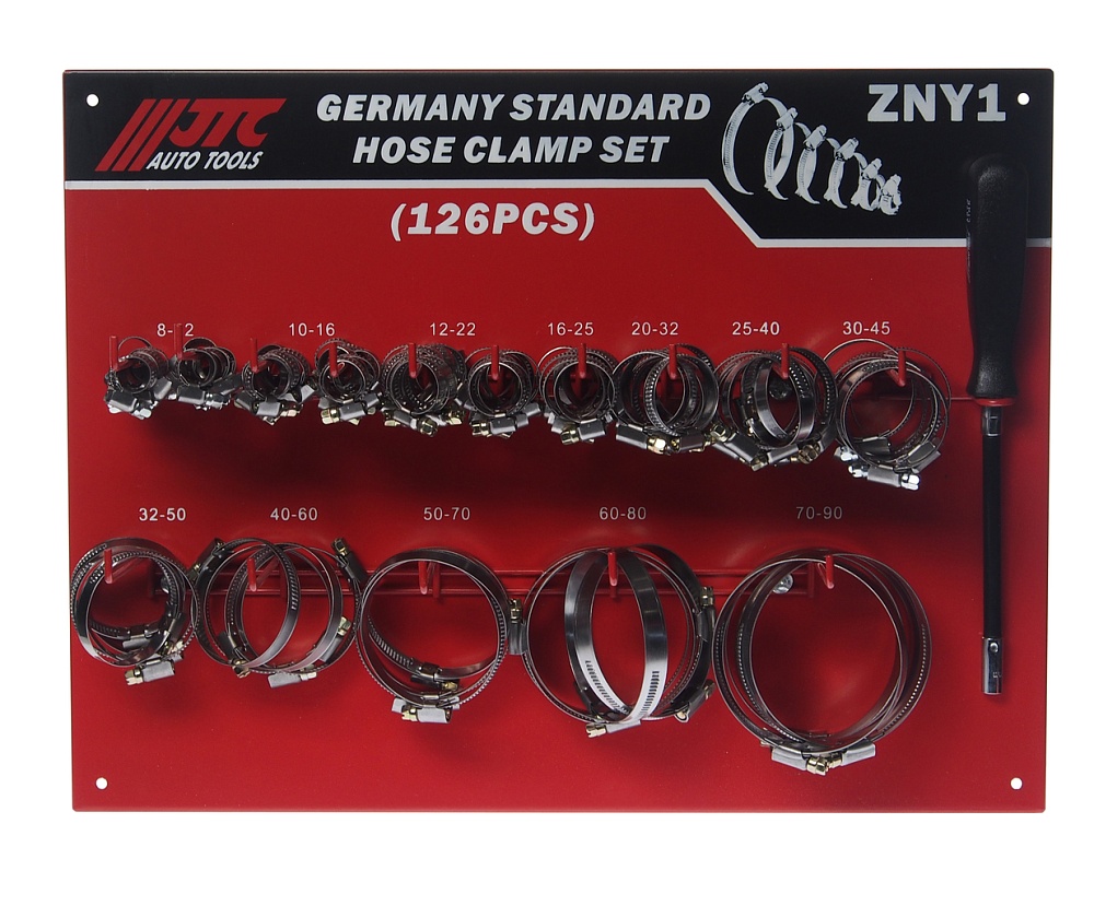 JTC-ZNY1 Набор хомутов червячных ZN12-ZN90 с гибким воротком 7мм (стенд) 126 предметов JTC /1 NEW