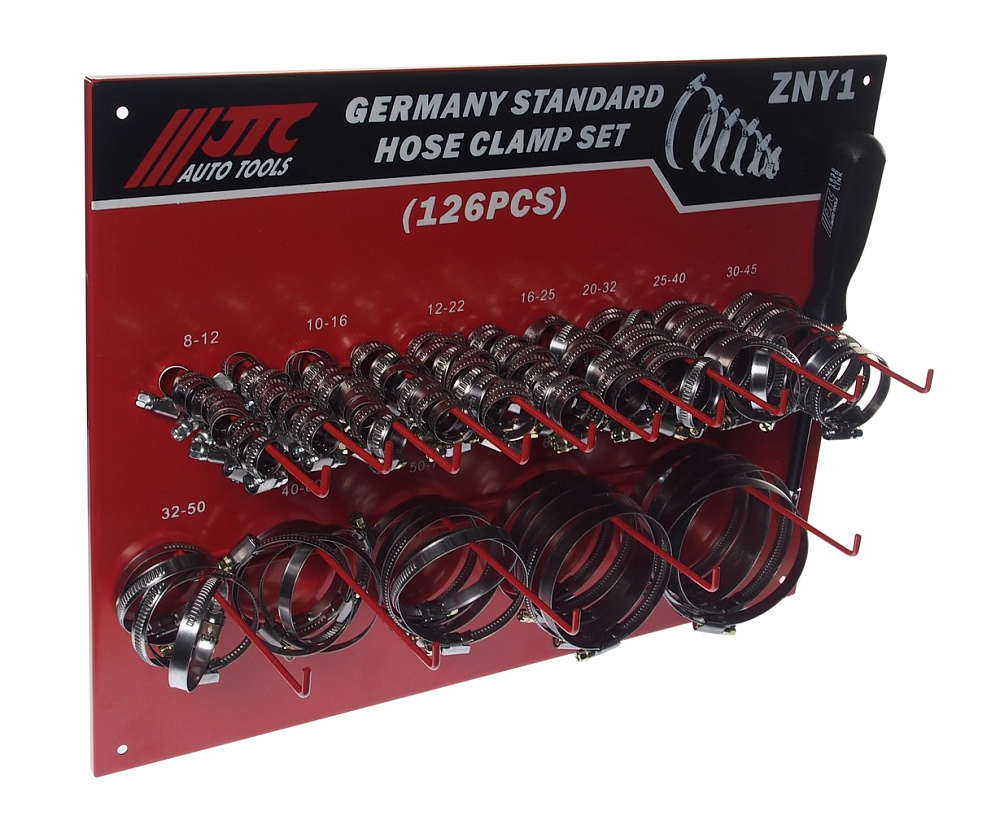 Набор хомутов червячных ZN12-ZN90 с гибким воротком 7мм (стенд) 126 предметов JTC /1 NEW
