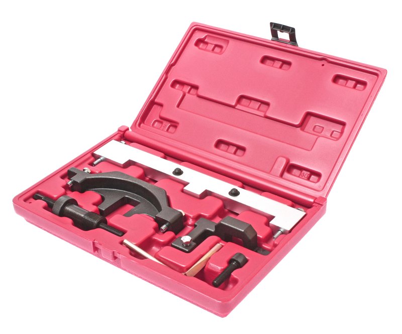 Комплект:Фиксатор маховика в ВМТИмитатор гидравлического натяжителя цепиУстановочный шаблон для фиксации распределительного вала впускных клапановУстановочный шаблон для фиксации распределительного вала выпускных клапановФиксатор колес датчиков положения распределительного валаФиксирующий болт