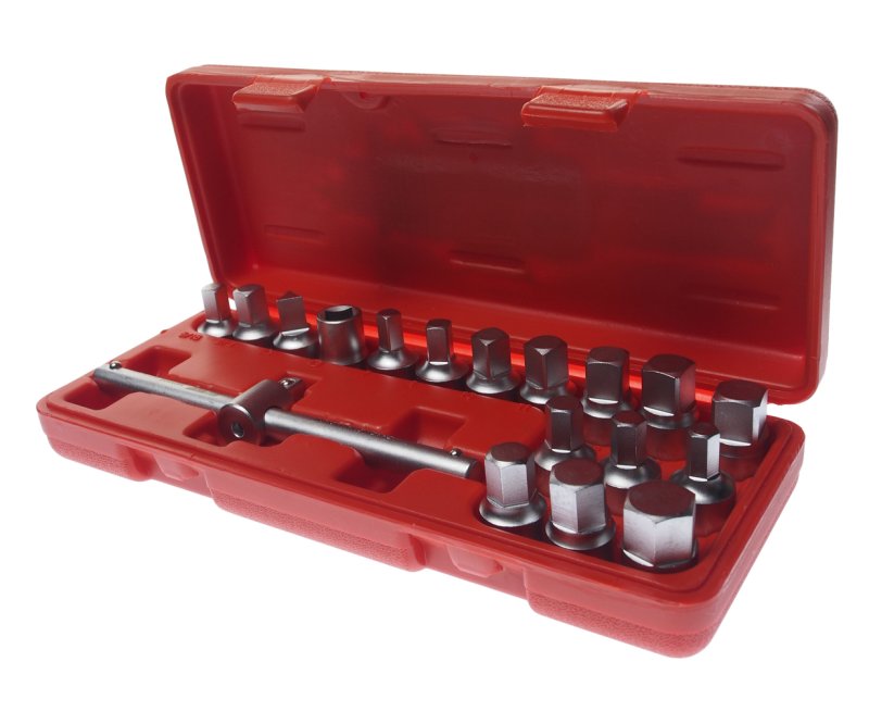 Набор головок для отворачивания масляных пробок 18 предметов JTC