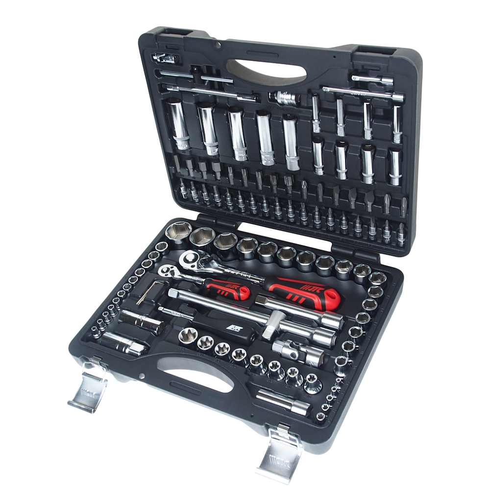 Набор головок торцевых и вставок 1/4",1/2" 6-гранных 110 предметов в кейсе JTC