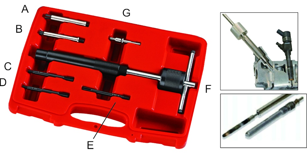 Набор предназначен для извлечения закоксованных и сломанных свечей накаливания.