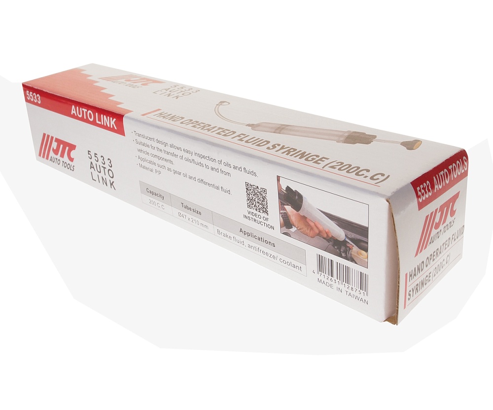 ШПРИЦ ПЛУНЖЕРНЫЙ ДЛЯ ТОРМОЗНОЙ ЖИДКОСТИ, АНТИФРИЗА 200МЛ (ПОЛИПРОПИЛЕН) JTC