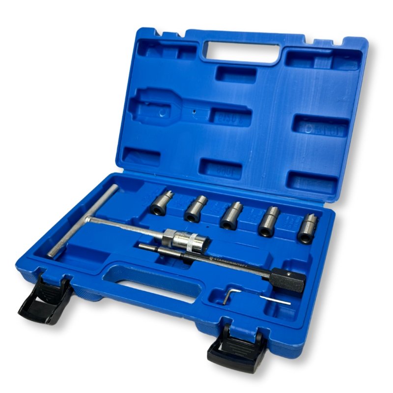 Набор специализированных приспособлений применяется для правки/чистки посадочных мест топливных форсунок дизельных двигателей. Комплектация Плоская развертка универсальная 15х19мм. Угловая развертка 17х17мм. Плоская развертка для инжекторов 17х17мм. Плоская развертка для инжекторов 17х19мм. Угловая развертка для инжекторов 17х21мм. Т-рукоятка с головкой 23мм 135х160мм. Держатель 19х173.8мм.