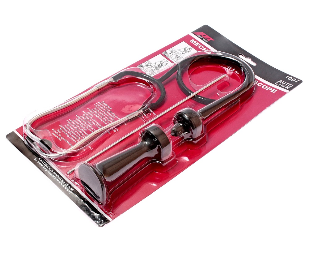 Имеет алюминиевую насадку, обеспечивающую точность определения местонахождения источника шума, подходит также для выявления утечек (клапаны, поршневые кольца, сальники).