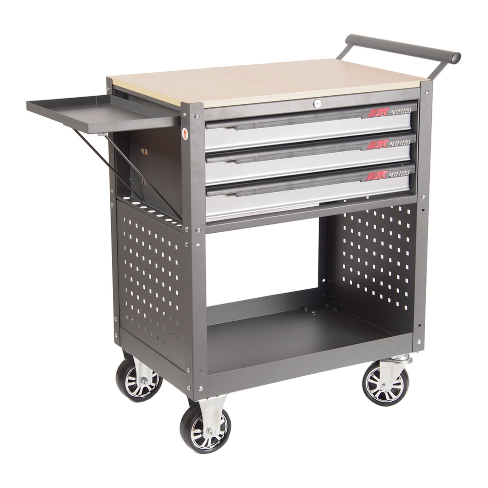 Инструментальная тележка (3 секции, серая, на колесах, с открытым отсеком) JTC 5516 имеет достаточно пространства для хранения инструмента и деталей: