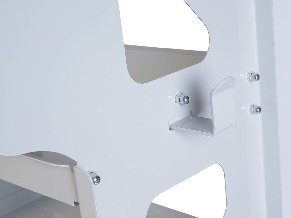 • Оснащена поворотными колесами, диаметром 60 мм (2 колеса оборудованы тормозом).