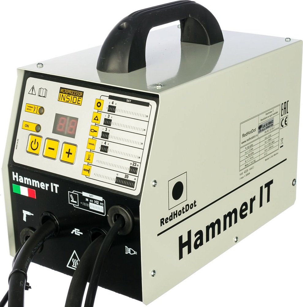 HAMMER IT - Профессиональный споттер для ремонта стальных деталей кузова любой сложности в промышленных условиях. Споттер оснащен системой упрощенной настройки Sinergic, которая позволяет быстро выбирать программы сварки. При активации программ автоматически изменяется ток и длительность сварочного импульса, а также соотношение между ними.