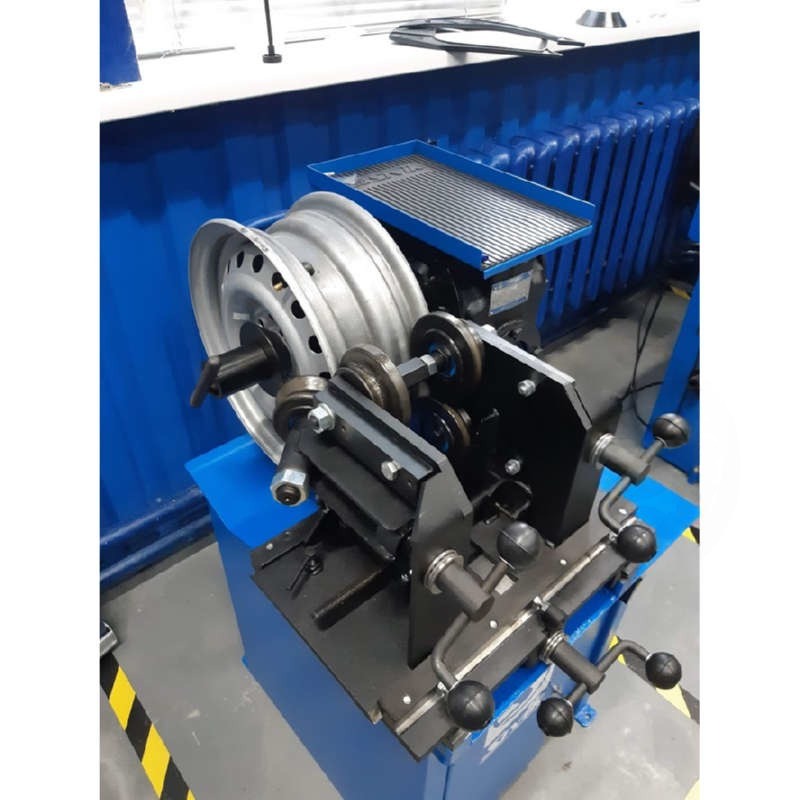 Стенд предназначен для правки любых повреждений легкосплавных литых и кованых дисков диаметром до 24” c электроприводом вала для просмотра биения поврежденного диска.