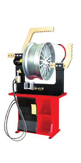 Стенд предназначен для правки любых повреждений легкосплавных литых и кованых дисков диаметром до 24” c электроприводом вала для просмотра биения поврежденного диска.