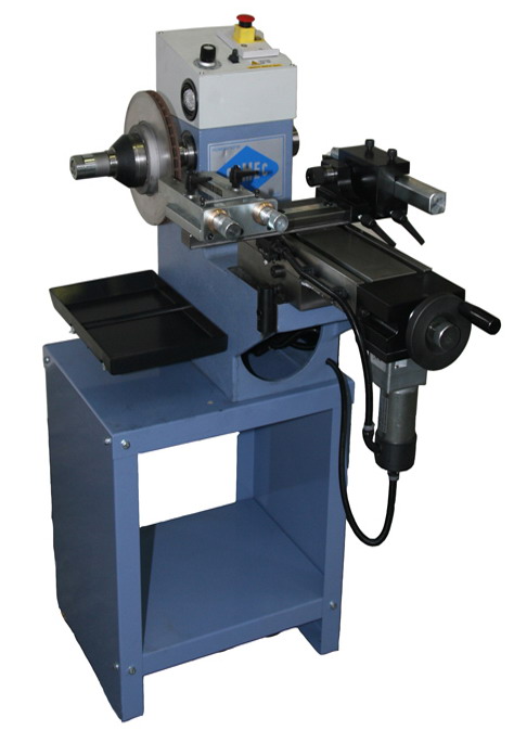 Станок для обтачивания тормозных дисков, установленных на автомобиле. Восстанавливает неровную поверхность изношенных тормозных дисков с минимальной потерей толщины, не снимая их с автомобиля.