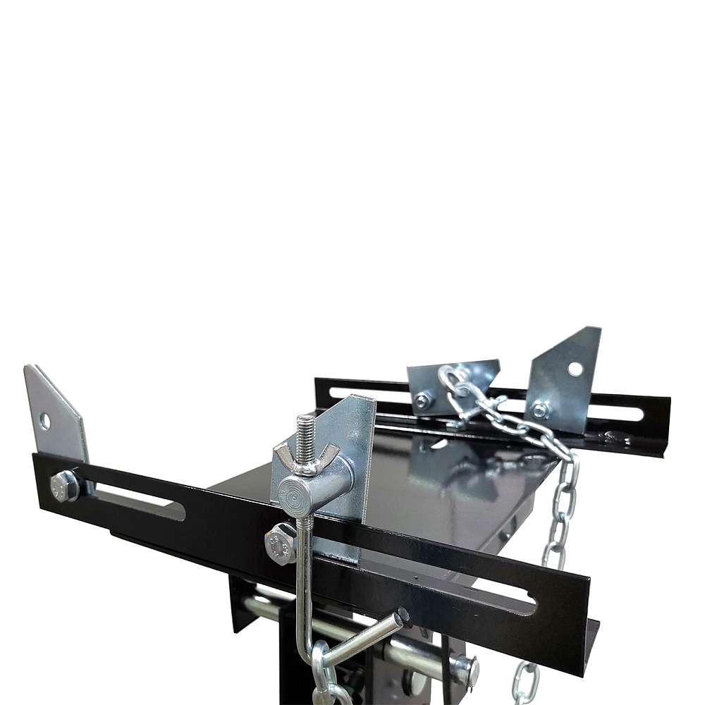 Эта модель рассчитана на безопасный подъем, удержание и транспортировку по производственным помещениями узлов и агрегатов всевозможных автомобилей. При условиях соблюдения ограничений по нагрузке установить на нее можно практически любую коробку передач и т.д., поскольку система настраиваемых угловых кронштейнов с цепями позволяет подстроить изделие под разные размеры груза, крепко зафиксировать его и перемещать. Толстая сталь и ее качественная покраска увеличивают долговечность T60103, а сварные опоры выдержат непрерывное пользование в условиях российских автотранспортных организаций.