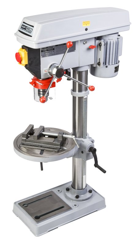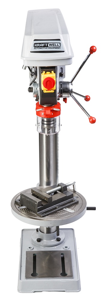 KRW-DP25 KraftWell Сверлильный станок, настольный. Лазерный указатель. Мощность 900 Вт, диаметр сверла до 25 мм. 12 скоростей. Расстояние до рабочего стола 360 мм. Тиски в комплекте.
