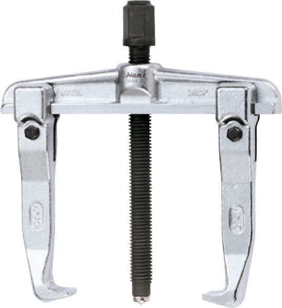 5312-05 двух лапый съемник, 5" Универсальный съемник с двумя захватами «американского типа» является одним из наиболее простых и в то же время, удобных в применении типов съемников. Захваты свободно перемещаются по направляющим траверсы, сохраняя одинаковую площадь пятна контакта лапок с демонтируемой деталью. При нагрузке захваты заклиниваются на направляющих, что предотвращает соскальзывание лапки с демонтируемой детали. Съемник также можно использовать для внутреннего захвата детали. Захваты изготовлены из хромованадиевой стали путем ковки. Ходовой винт изготовлен из хромомолибденовой стали.