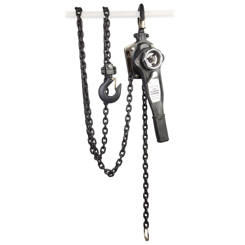 Рычажная таль предназначена для подъема, подтягивания и опускания грузов весом до 750 кг. Длина цепи составляет 3 метра.