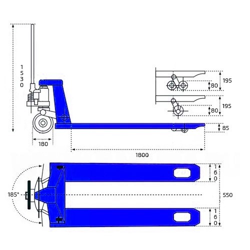 Гидравлическая тележка RAKUDA CP 25 LONG 2000 , 2500 кг, 2000*550, колёса п/у, ролики п/у (VILS)