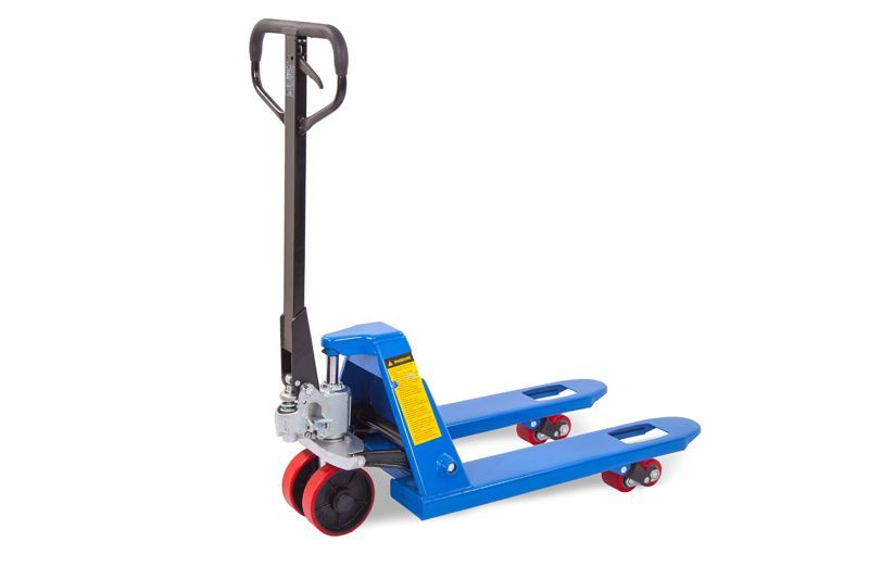 с укороченными и зауженными вилами. Длина вил составляет 800 мм ширина 450 мм. Тележка предназначена для работы с небольшими паллетами, либо работа по короткой стороне паллеты. Грузоподъемностью 2,5 тонны – для обработки грузов на стандартных евро паллетах. Износостойкие полиуретановые колеса увеличивают срок эксплуатации тележки до замены колес.#|---|#Гидравлические тележки TOR RHP– это серия очень надежных тележек. Серия специально предназначена для интенсивной работы на предельных нагрузках. Серия состоит из нескольких видов тележек: стандартная под евро паллеты, низкопрофильная, узковильная, длинновильная, коротковильная, увеличенной грузоподъемности, с разными типами колес. Хотите купить качественную рохлю и просто работать, не думая о ремонте – серия RHP для вас. При соблюдении правил эксплуатации тележка RHP прослужит очень долго. Гарантия на них 1 год + 1 год бесплатного сервисного обслуживания. Данная модификация тележки RHP выполняется с укороченными и зауженными вилами. Длина вил составляет 800 мм ширина 450 мм. Тележка предназначена для работы с небольшими паллетами, либо работа по короткой стороне паллеты. Грузоподъемностью 2,5 тонны – для обработки грузов на стандартных евро паллетах. Износостойкие полиуретановые колеса увеличивают срок эксплуатации тележки до замены колес. Подробные технические характеристики тележки можно посмотреть ниже в разделе технические характеристики. При выборе гидравлической тележки обращайте внимание на ее основные эксплуатационные характеристики, которые важны для вас. Если нужна консультация специалиста, воспользуйтесь удобным для вас способом связи для получения исчерпывающей информации по выбору тележки.