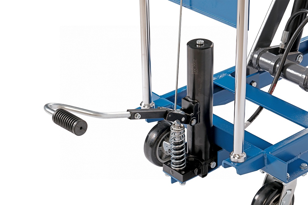 - Ножной гидравлический привод экономит силы, производя точный подъем груза