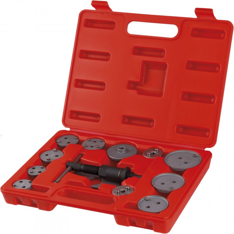Комплект для развода поршней тормозных цилиндров дисковых тормозов применяется для упрощения работ по замене тормозных колодок. Количество предметов  18 Вес нетто    кг 2,4 Габариты в упаковке ДxШxВ    мм    330х260х54