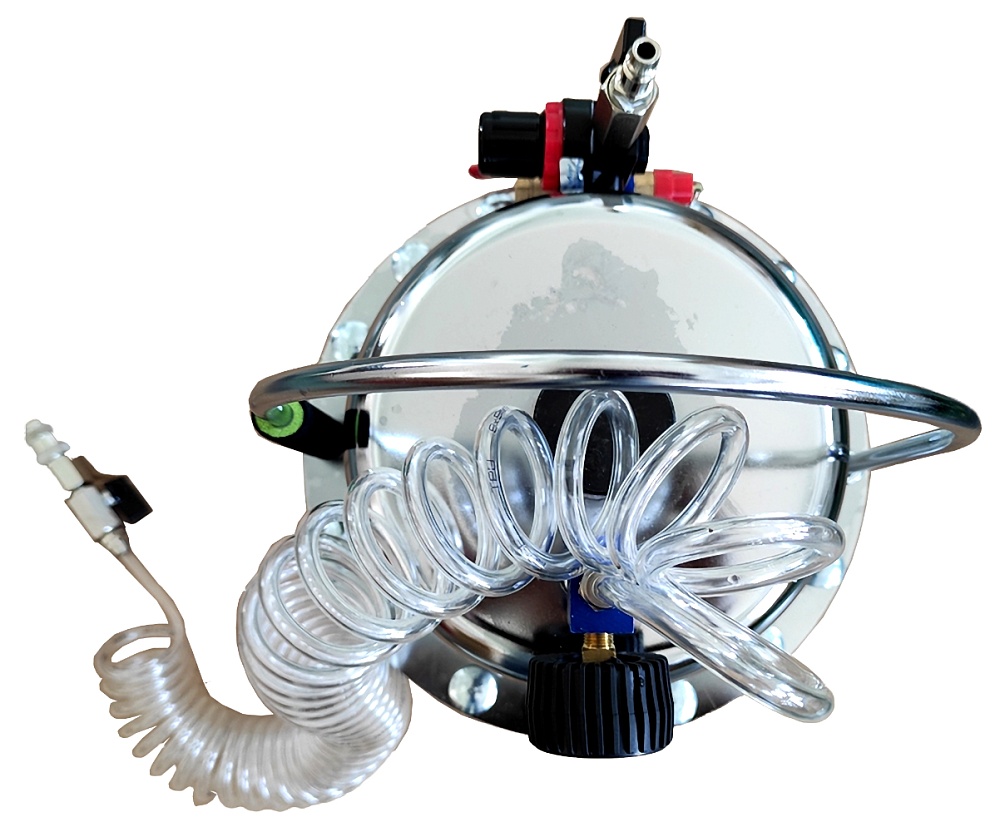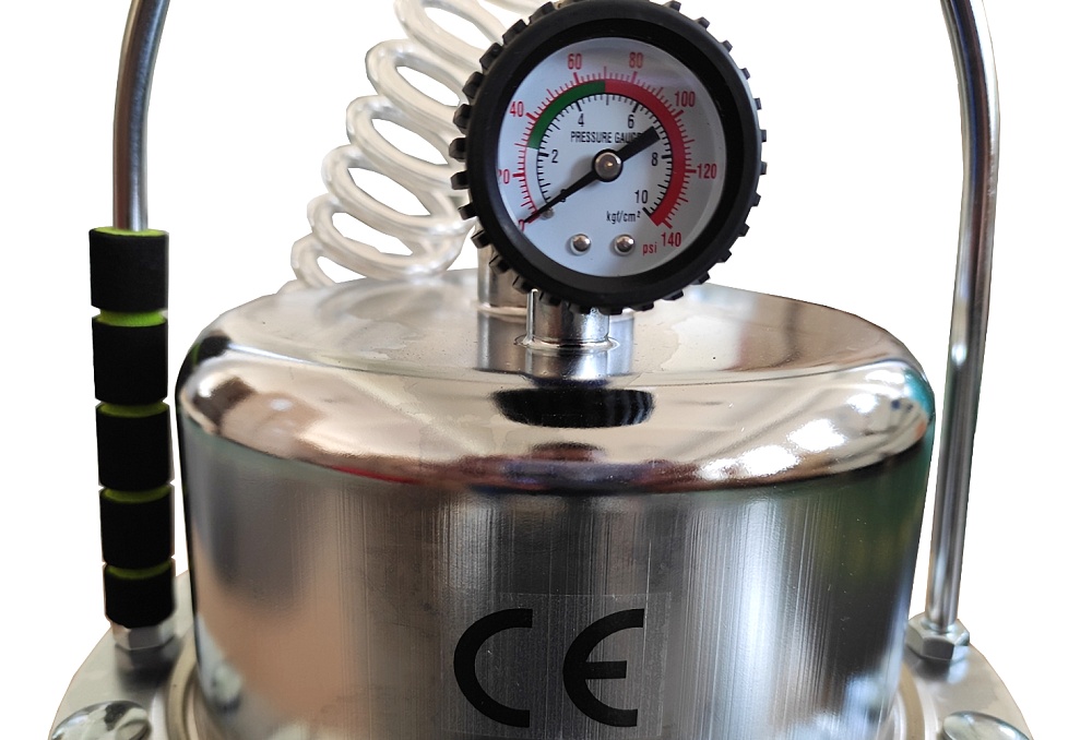 Конструкция приспособления исключает попадание воздуха в тормозную систему автомобиля. Для контроля рабочего давления устройство оснащено качественным манометром.