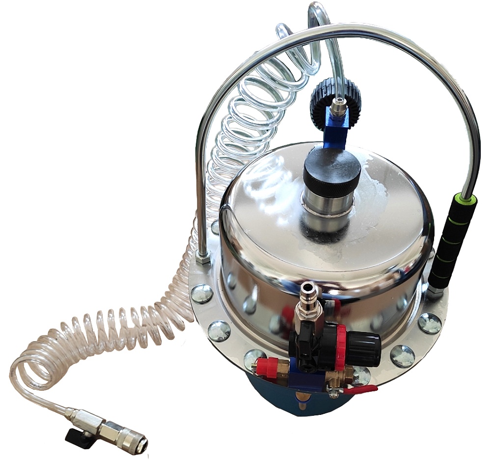 Приспособление для замены тормозной жидкости позволяет не только провести, но и значительно ускорить, упростить процесс замены тормозной жидкости. Устройство можно применять как в сервисных центрах для большинства автомобилей, так и для других транспортных предприятий. Комплектация устройства позволяет заменить тормозную жидкость с последующей прокачкой системы одному человеку. Благодаря продуманной конструкции устройства абсолютно исключено попадание воздуха в тормозную систему автомобиля. Создает мощный вакуум для промывки системы гидравлических тормозов и сцепления. Качественный манометр регулирует рабочее давление устройства.