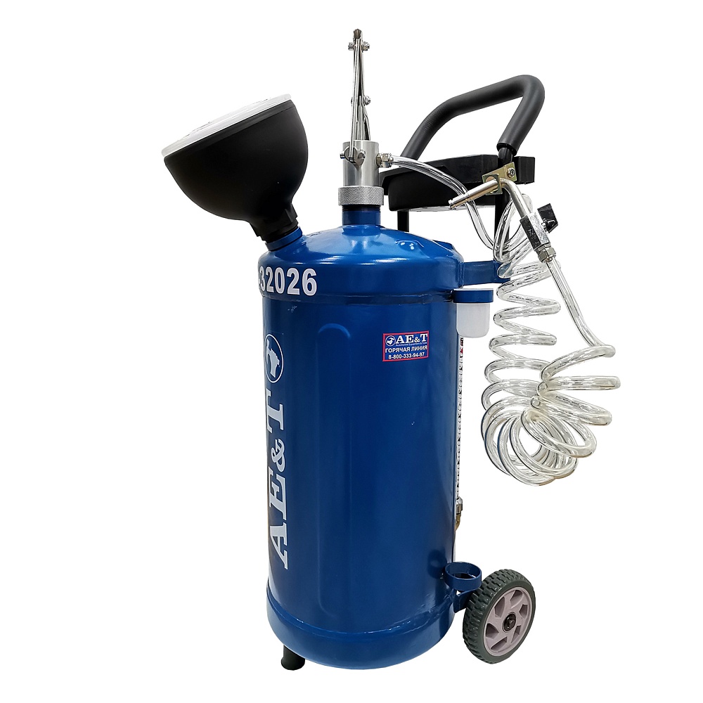 Устройство состоит из резервуара объемом 30 л, воронки для залива масла и ручного насоса.