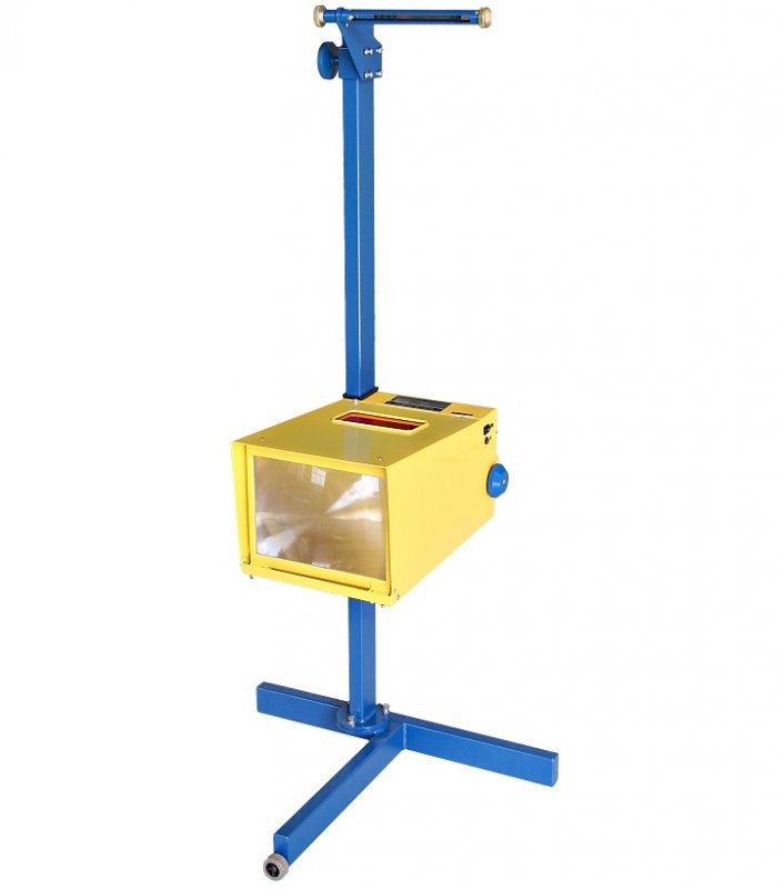 Прибор проверки и регулировки света фар оптико-механический, пластиковый наводчик, электронный люксметр, зеркальный визир, регулируемый измерительный щит, основание на колесиках, неподвижная стойка со скользящими нейлоновыми колодками.