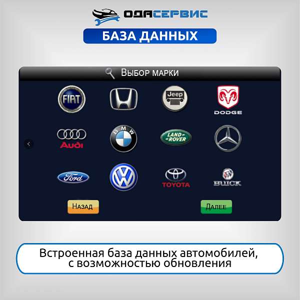 Установка имеет базу данных автомобилей