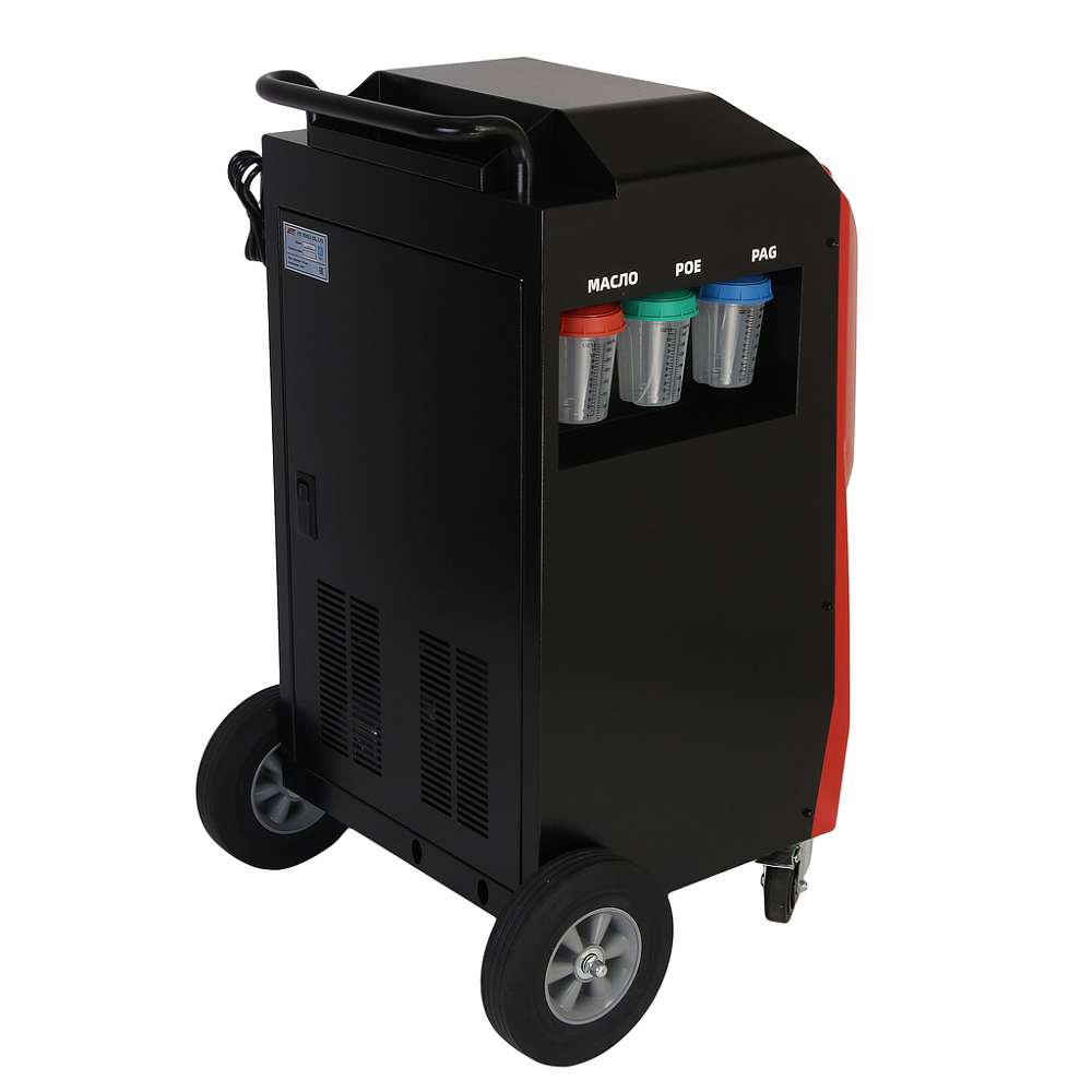 Автоматическая установка для обслуживания автомобильных систем кондиционирования с фреоном R-134a. Функции: откачивание и очистка хладагента из системы, отделение и последующий сброс масла, вакуумирование системы, автоматическая заправка фреона и масла.