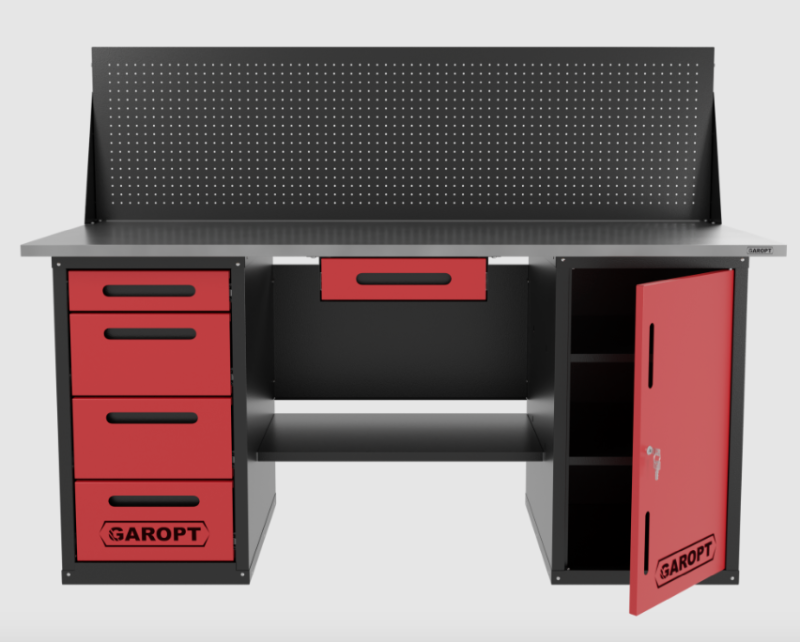Верстак двухтумбовый дверь/4 ящиков с экраном и ящиком, красный 1800*700 Garopt, GT1800DY1Y4PP.red